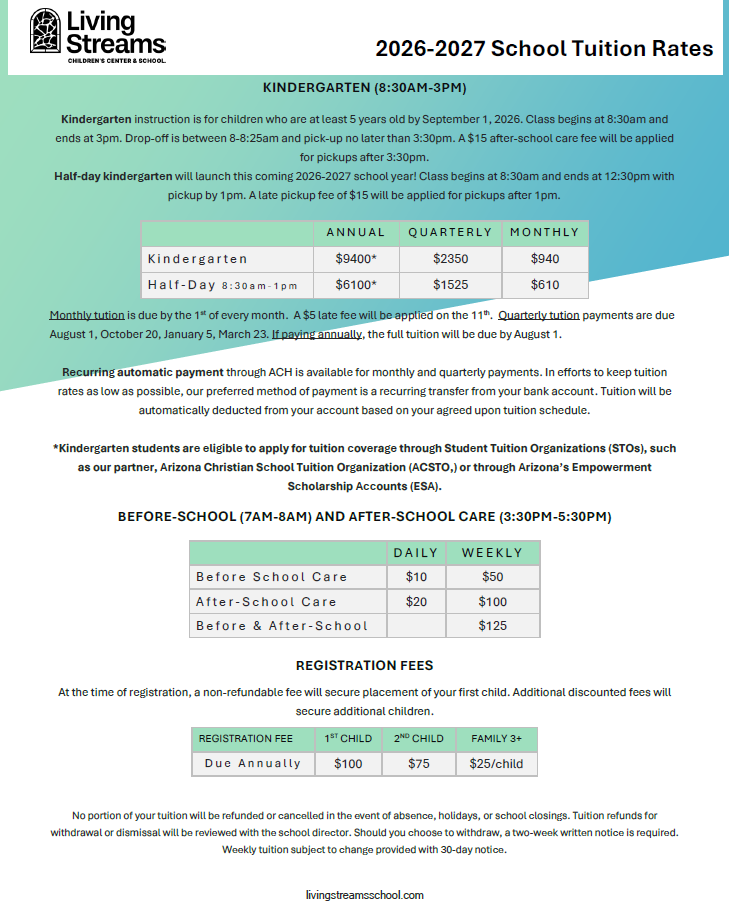 There is also a registration fee, the amount will depend on how many children you are registering. Please see the tuition rate sheet below.